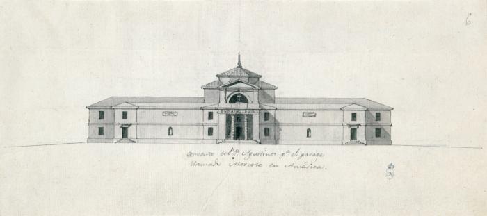 Alzado del convento de PP Agustinos en América. En Trazas, rasguños y diseños del arquitecto Silvestre Pérez