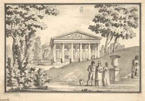 La nueva musa. Boceto para una estatua de la Zarzuela. Dibujo en carta a Francisco Asenjo Barbieri del 30-5-1877.
