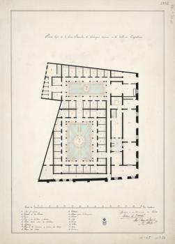 Casa de baños y fonda en la calle de Capellanes esquina a la plazuela de Celenque, Madrid. Planta baja . [1836]