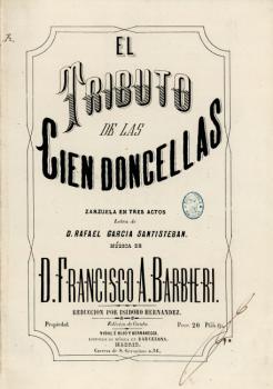 El tributo de las cien doncellas. Zarzuela en tres actos letra de D. Rafael García Santisteban (1875)